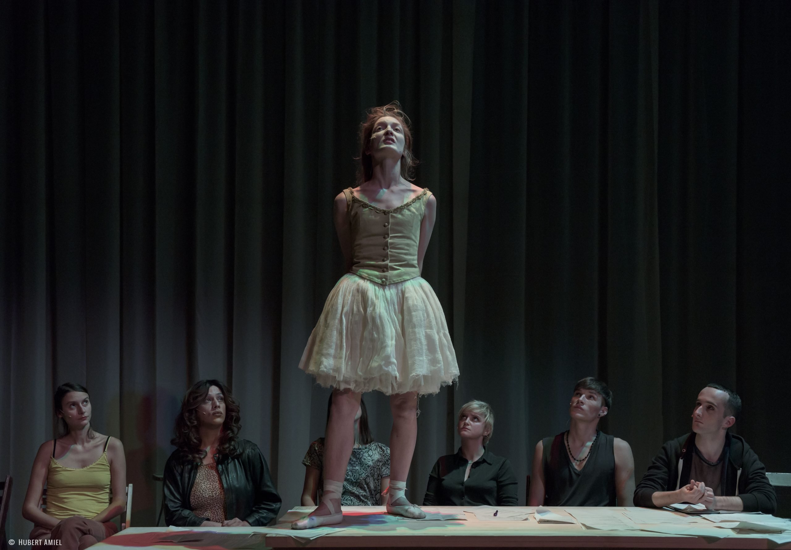 Elles parlent de leurs conditions de travail dans une société qui refuse de leur reconnaître des droits. Des pratiques qui se diversifient. Elles rappellent, aujourd’hui encore, que vouloir abolir la prostitution ne mène qu’à aggraver les conditions dans lesquelles elle s’exerce et à augmenter les violences qui leur sont faites. Elles convoquent l’histoire de nombreuses femmes qui, depuis des siècles, se sont un jour prostituées pour survivre ou pour s’émanciper. De femmes – courtisanes, blanchisseuses, gantières, danseuses, strip-teaseuses, putes, etc. – qui, hier comme aujourd’hui, ont été punies pour avoir transgressé l’ordre patriarcal, pour avoir gagné de l’indépendance. Car le stigmate de putain frappe toutes les femmes, comme un coup de fouet, il est un châtiment, il menace, il contrôle. La lutte pour les droits de toutes les femmes ne commence-t-elle pas par la lutte avec les putes et pour les droits des putes ? Le spectacle espère réveiller des alliances en donnant la parole à ces femmes qui réclament qu’on cessent de les traiter comme des victimes ou des criminelles pour enfin les entendre et les regarder comme des personnes.